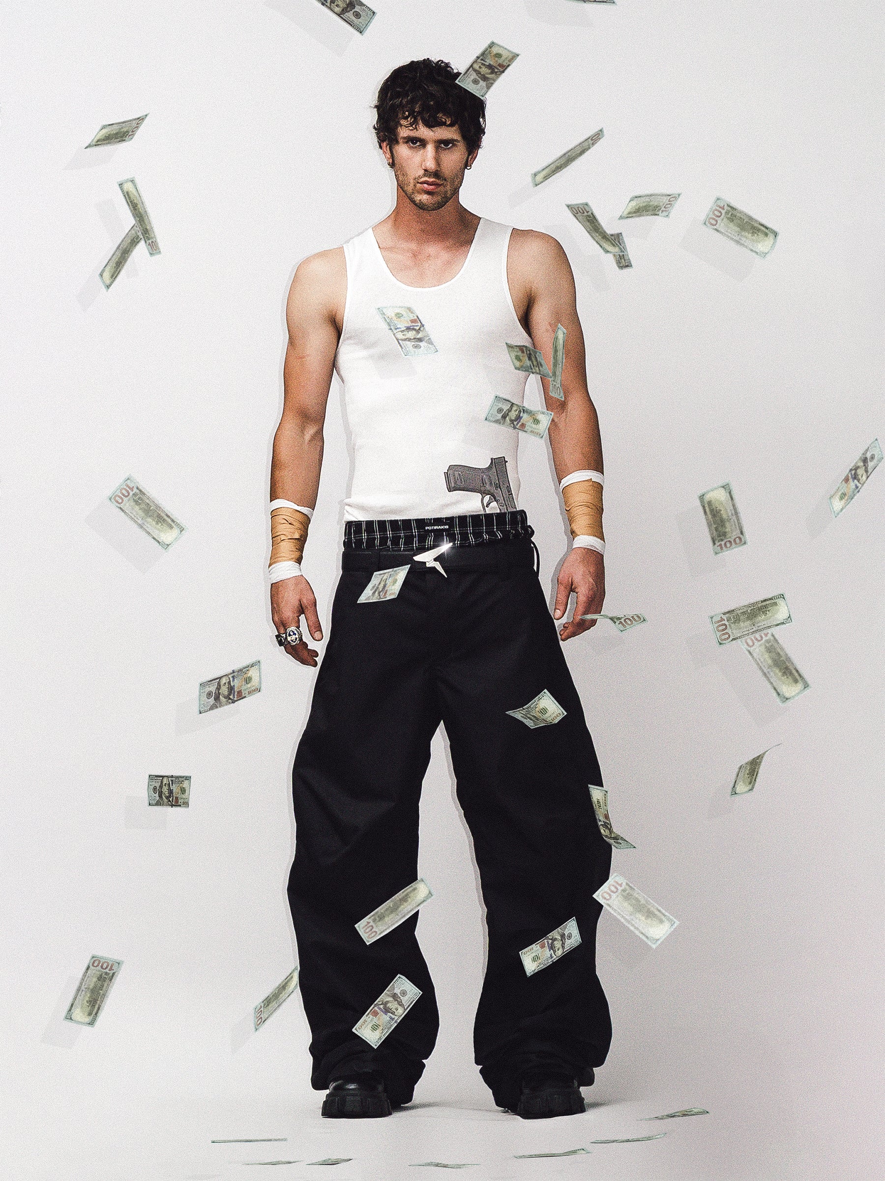 POTIRAKIS' SS26: GOD BLESS AMERICA COLLECTION STUDIES THE ARCHITECTURE OF DOMINANCE. AN OUTSIDE PERSPECTIVE ON THE UNITED STATES OF AMERICA. A NATION DEFINED BY CONTRADICTION AND THE THE DECAY OF AN EMPIRE.